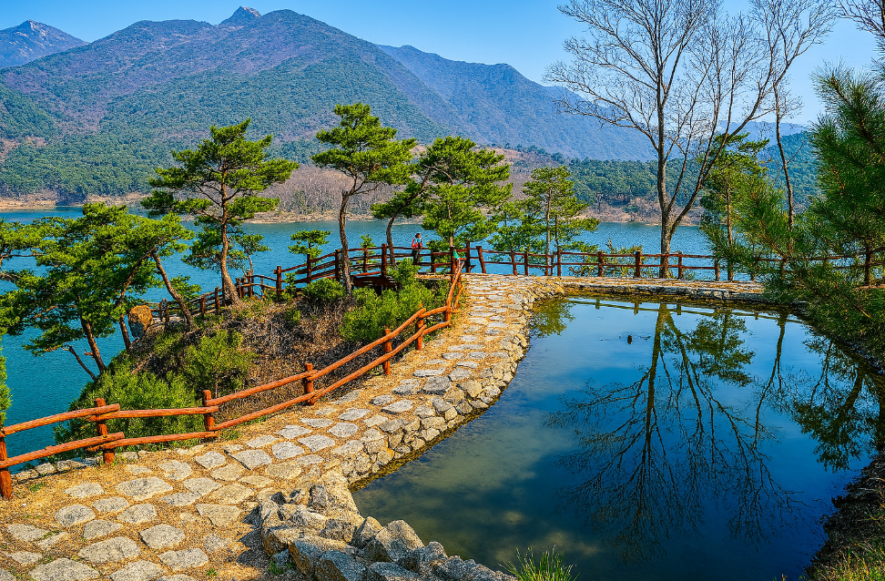 괴산댐과 괴산호를 끼고 조성되어 있어서 물소리와 새소리가 어우러진 정말 아름다운 풍경을 감상할 수 있답니다.